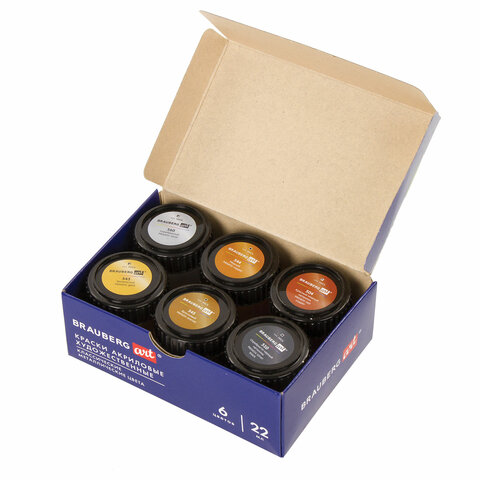 Краски акриловые художественные металлические цвета BRAUBERG ART CLASSIC, НАБОР 6 шт*22мл, 191717