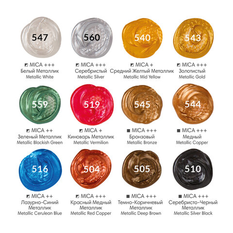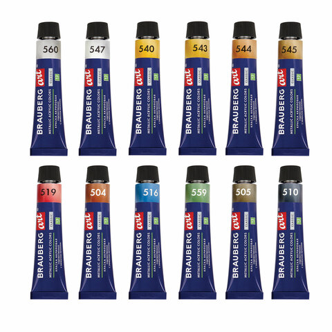 Краски акриловые художественные металлик BRAUBERG ART CLASSIC, НАБОР 12 шт, в тубах 12 мл, 191719