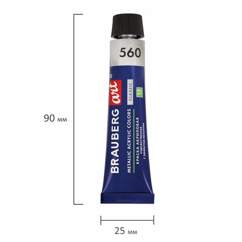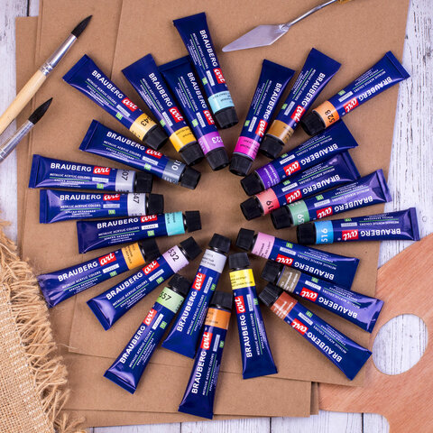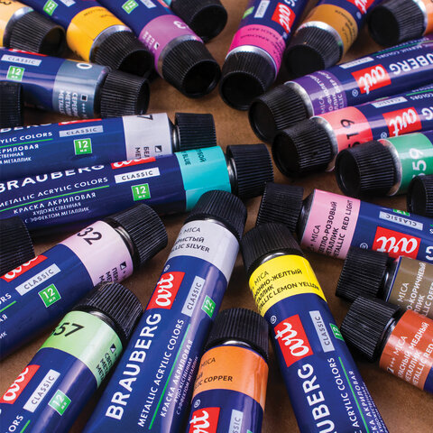 Краски акриловые художественные металлик BRAUBERG ART CLASSIC, НАБОР 24 шт, в тубах 12 мл, 191720