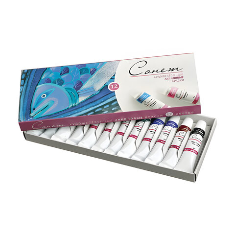 Краски акриловые художественные "Сонет", НАБОР 12 цветов по 10 мл, в тубах, Невская Палитра, 2841095