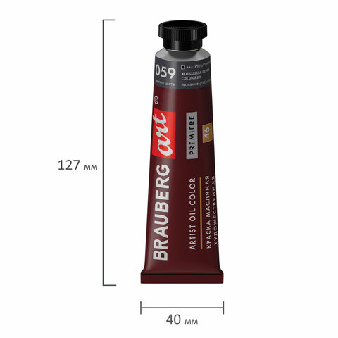 Краска масляная художественная BRAUBERG ART PREMIERE, 46 мл, проф. серия, ХОЛОДНАЯ СЕРАЯ, 191450