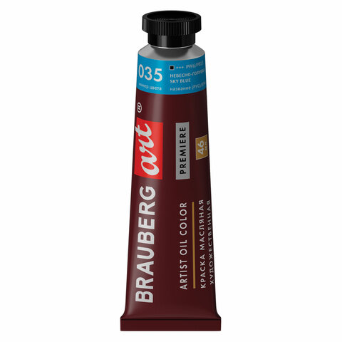 Краска масляная художественная BRAUBERG ART PREMIERE, 46 мл, проф. серия, НЕБЕСНО-ГОЛУБАЯ, 191414