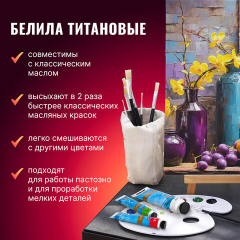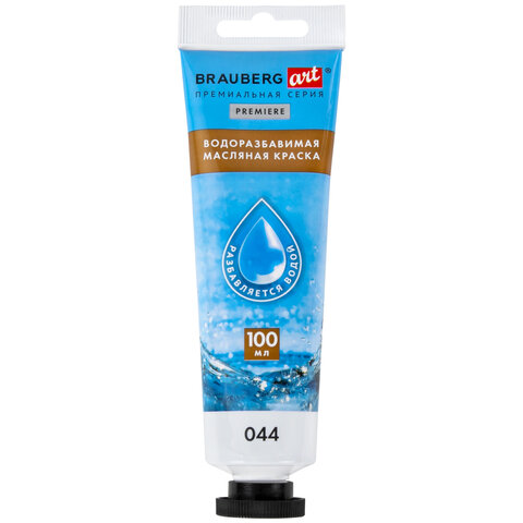 Краска масляная ВОДОРАЗБАВИМАЯ художественная 100 мл, БЕЛИЛА ТИТАНОВЫЕ, BRAUBERG ART, 192289