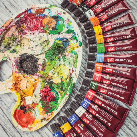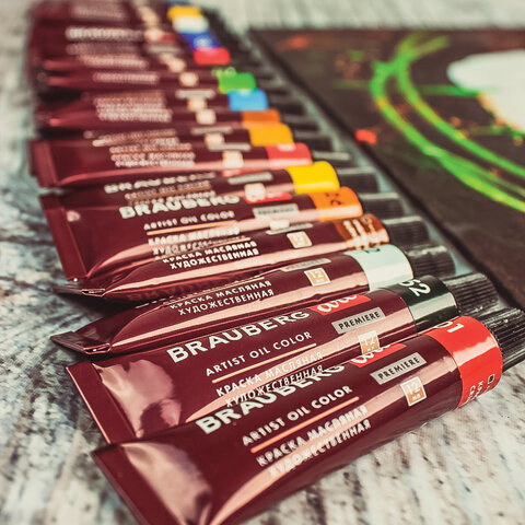 Краски масляные художественные BRAUBERG ART PREMIERE, 18 цв. по 12 мл, в тубах, 191456