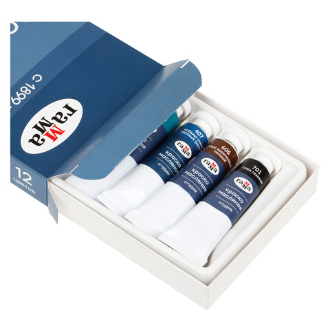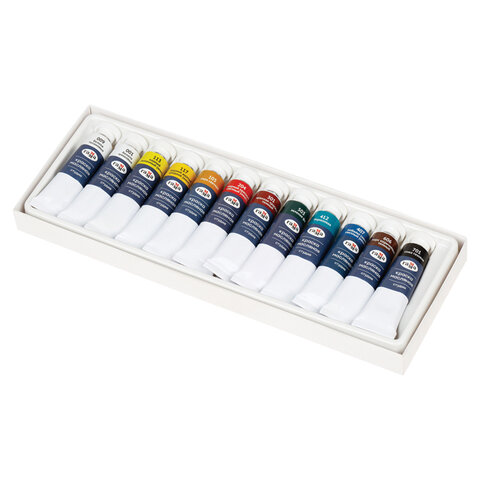 Краски масляные художественные ГАММА "Студия", НАБОР 10 цветов по 9 мл + 2 белых цвета, в тубах, 203007