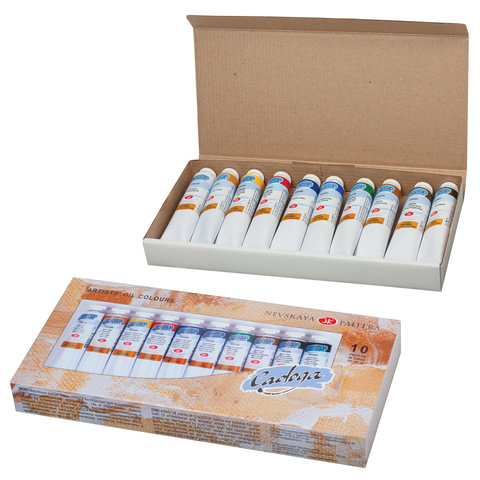 Краски масляные художественные "Ладога", НАБОР 10 цветов по 46 мл, в тубах, Невская Палитра, 1241006