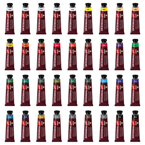 Краски масляные художественные НАБОР "PREMIERE 36 штук 32 цвета!", в тубах 12 мл, BRAUBERG ART, 192008