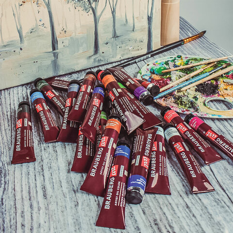Профессиональные масляные краски BRAUBERG ART PREMIERE изготовлены из высококачественных пигментов, обладают насыщенной цветовой палитрой, высокой светостойкостью, легко смешиваются и не меняют цвет при высыхании.