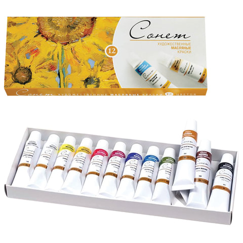 Краски масляные художественные "Сонет", НАБОР 12 цветов по 10 мл, в тубах, Невская Палитра, 2641099