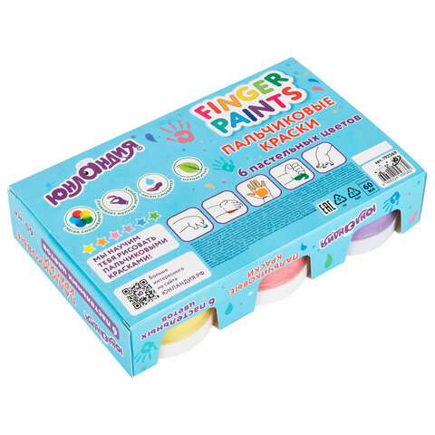 Краски пальчиковые для малышей от 1 года, пастельные цвета, 6 по 60 мл, ЮНЛАНДИЯ, 192569