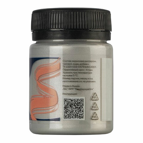 Краска по ткани акриловая "Декола", банка 50 мл, серебряная, Невская Палитра, 4128966