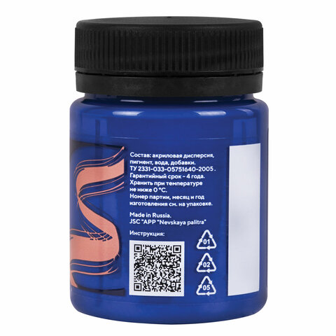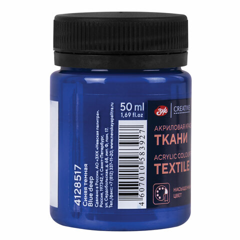 Краска по ткани акриловая "Декола", банка 50 мл, синяя темная, Невская Палитра, 4128517