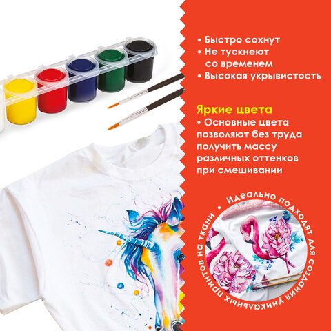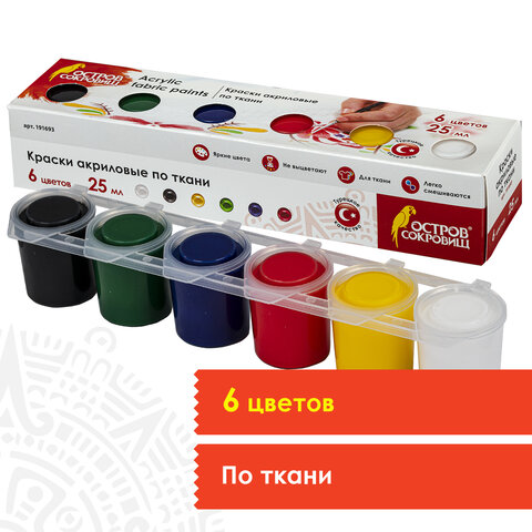 Краски акриловые по ткани ОСТРОВ СОКРОВИЩ 6 цветов по 25 мл, 191693