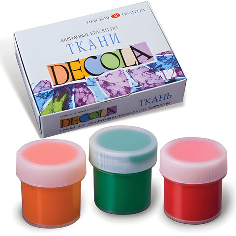 Краски по ткани акриловые "Декола", 12 цветов по 20 мл, в баночках, Невская Палитра, 4141216