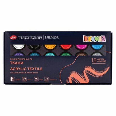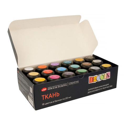Краски по ткани акриловые "Декола", 18 цветов по 20 мл, в банках, Невская Палитра, 41412031