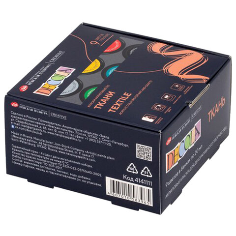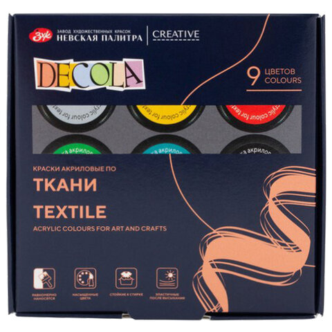 Краски по ткани акриловые "Декола", 9 цветов по 20 мл, в банках, Невская Палитра, 4141111
