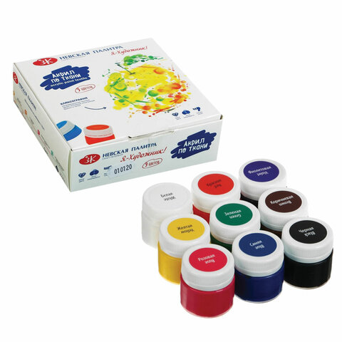 Краски по ткани акриловые "Я - Художник!", 9 цветов по 15 мл, в банках, Невская Палитра, 228411541