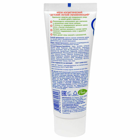 Крем для рук легкий и увлажняющий 75 мл, "ДЕТСКИЙ", 1788