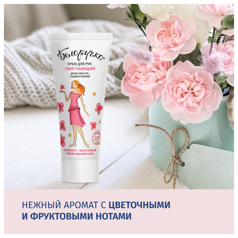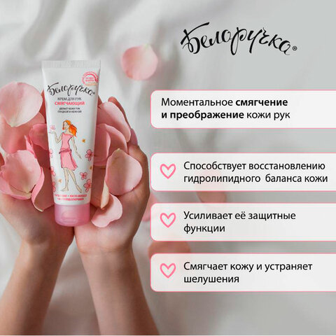 Крем БЕЛОРУЧКА "Смягчающий" для увлажнения и смягчения кожи рук. Подходит для всех типов кожи. Обеспечивает базовый уход.