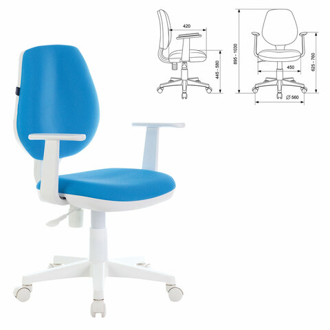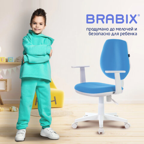 Кресло детское BRABIX "Fancy MG-201W", с подлокотниками, пластик белый, голубое, 532411, MG-201W_532411