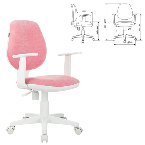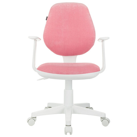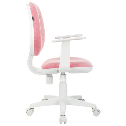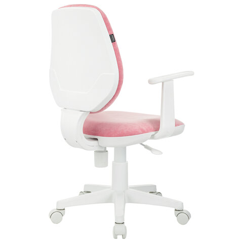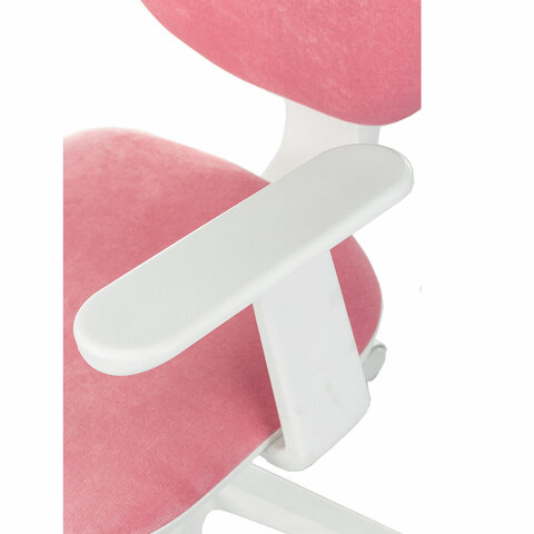 Кресло детское BRABIX "Fancy MG-201W", с подлокотниками, пластик белый, ткань вельветовая, розовое, 533009