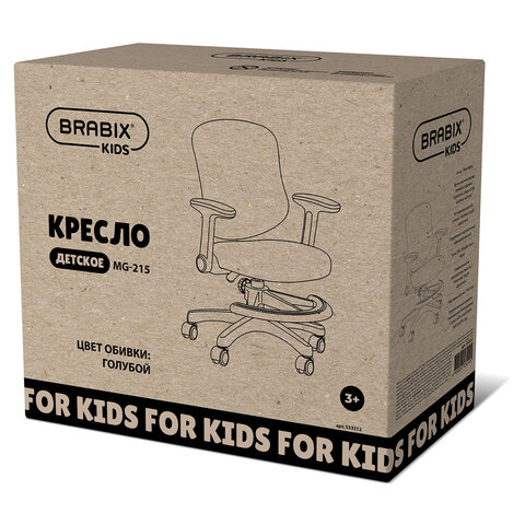 Кресло детское с подставкой для ног BRABIX KIDS "MG-215", сетка/ткань TW, голубое, 533312