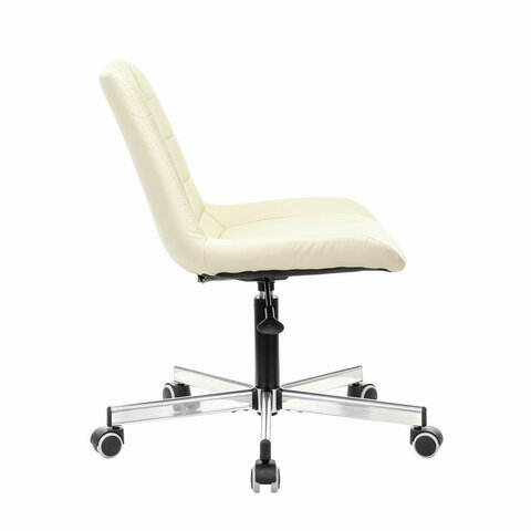 Кресло BRABIX "Deco MG-316", без подлокотников, пятилучие серебристое, экокожа, слоновая кость, 532081
