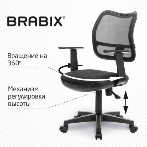 Кресло BRABIX "Drive MG-350", с подлокотниками, сетка, черное, 532082