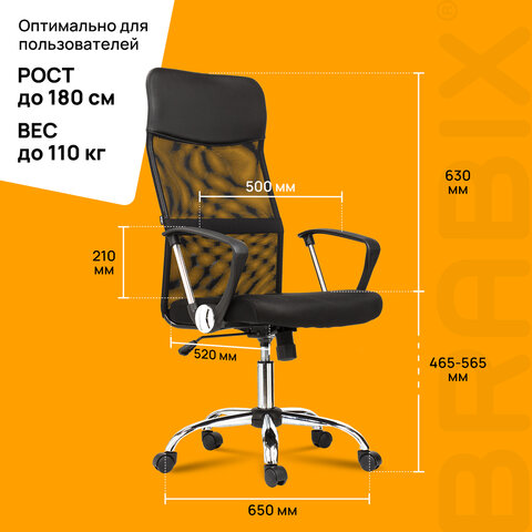 Кресло BRABIX "Flash MG-302", с подлокотниками, хром, черное, 530867
