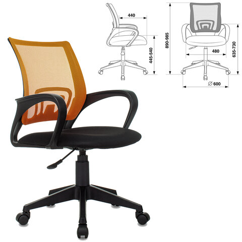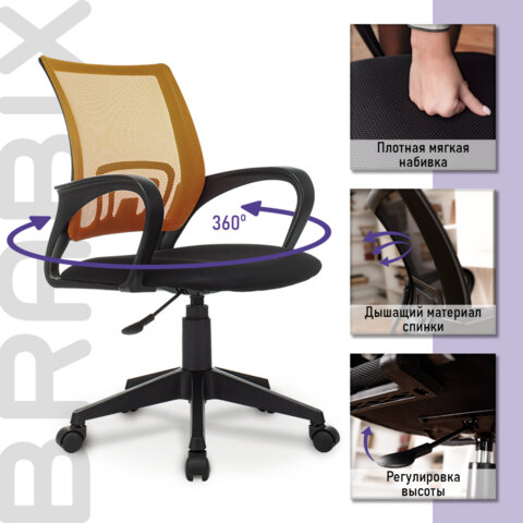Кресло BRABIX "Fly MG-396", с подлокотниками, сетка, оранжевое/черное, 532084