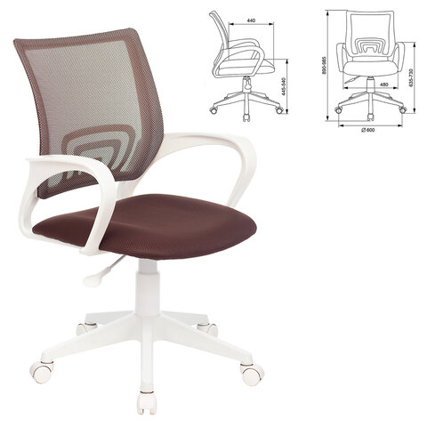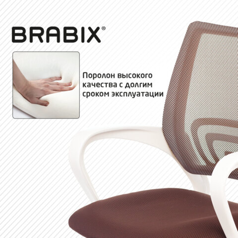 Кресло BRABIX "Fly MG-396W", с подлокотниками, пластик белый, сетка, коричневое, 532398, MG-396W_532398