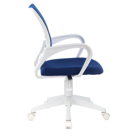 Кресло BRABIX "Fly MG-396W", с подлокотниками, пластик белый, сетка, темно-синее, 532399, MG-396W_532399