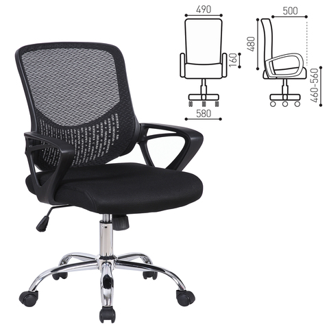 Кресло BRABIX "Next MG-318", с подлокотниками, хром, черное, 531834