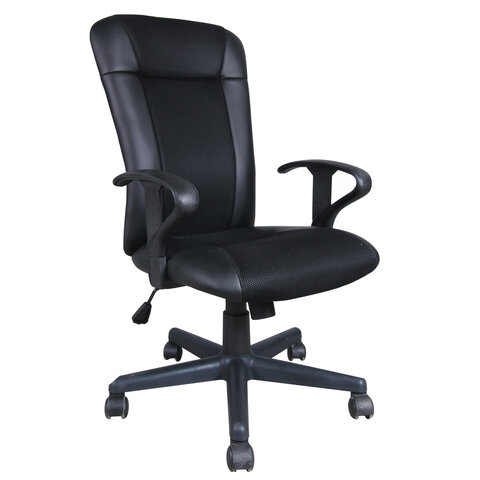 Кресло BRABIX "Optima MG-370", с подлокотниками, экокожа/ткань, черное, 531580