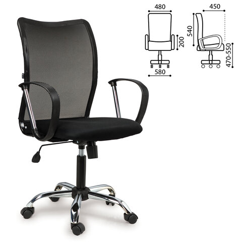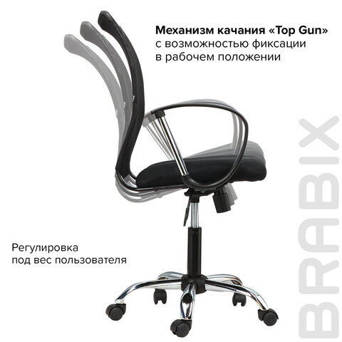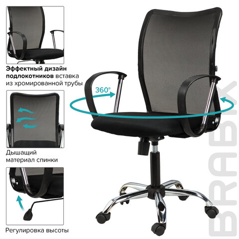 Кресло BRABIX "Spring MG-308", с подлокотниками, хром, ткань черная TW, 531403