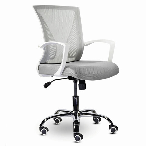 Кресло BRABIX "Wings MG-306", пластик белый, хром, сетка, серое, 532012