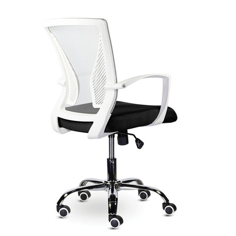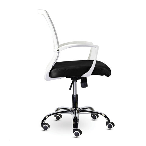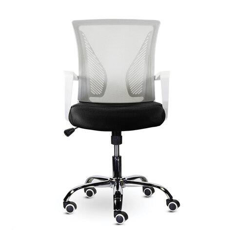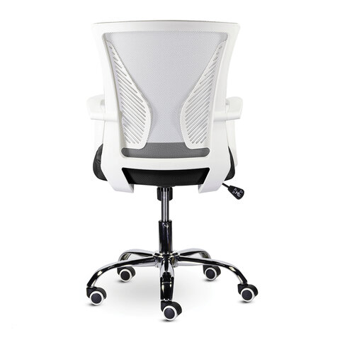 Кресло BRABIX "Wings MG-306", пластик белый, хром, сетка, серое/черное, 532010