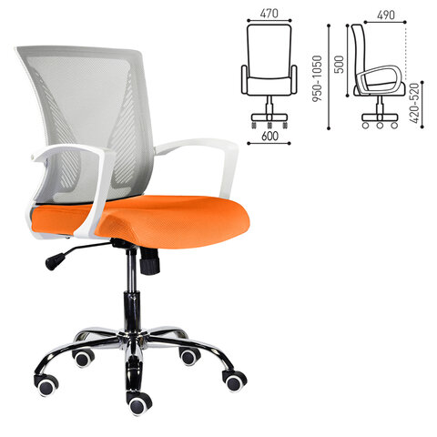Кресло BRABIX "Wings MG-306", пластик белый, хром, сетка, серое/оранжевое, 532011