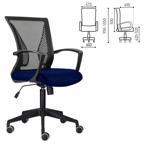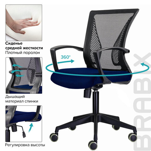 Кресло BRABIX "Wings MG-309", пластик черный, сетка, черное/синее, 532013