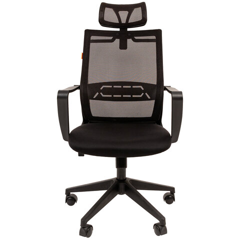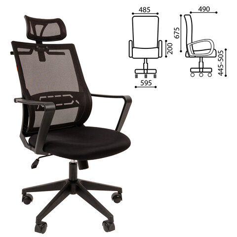 Кресло Chairman СН 545, регулируемый подголовник, вешалка плечики, сетка/ткань TW, черное, 7126770