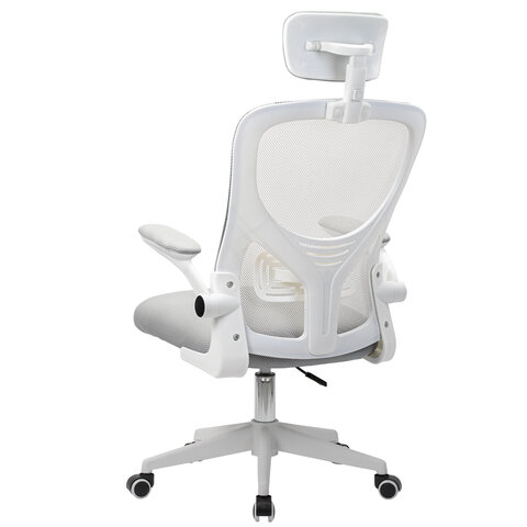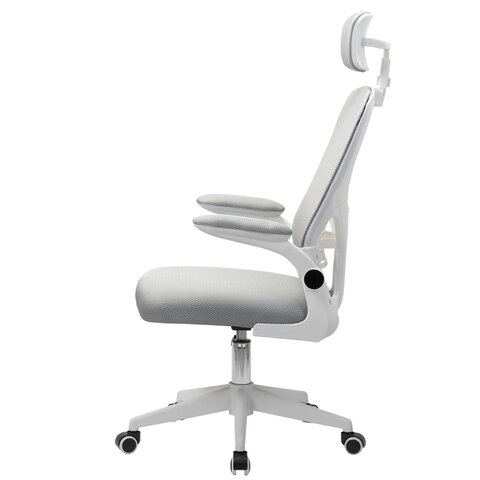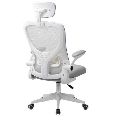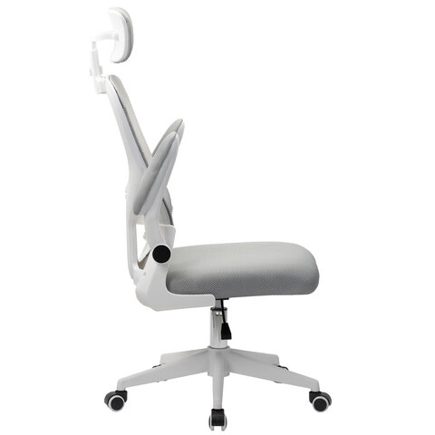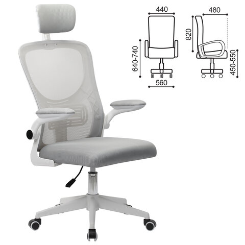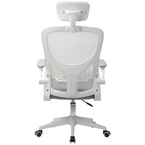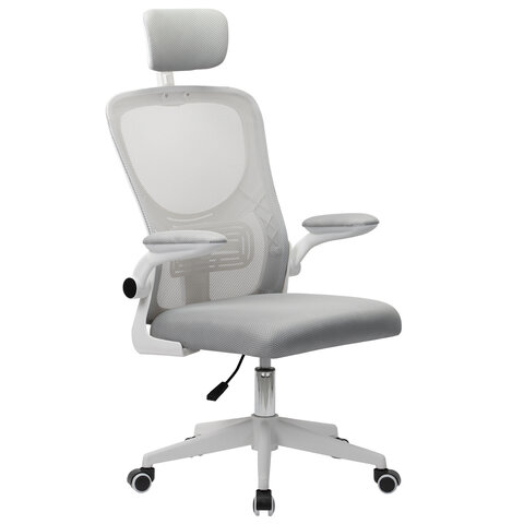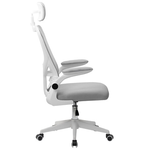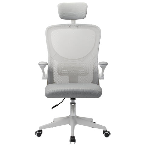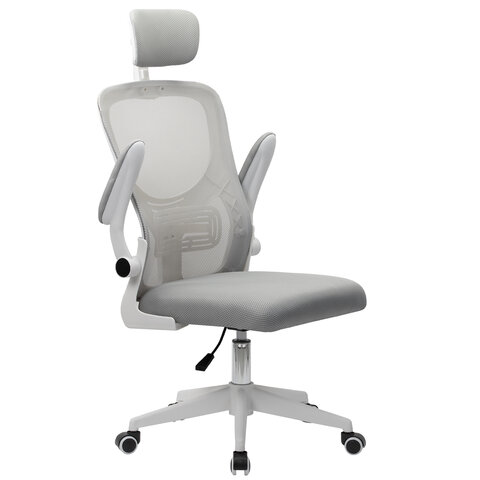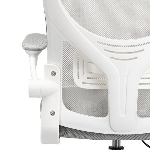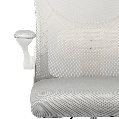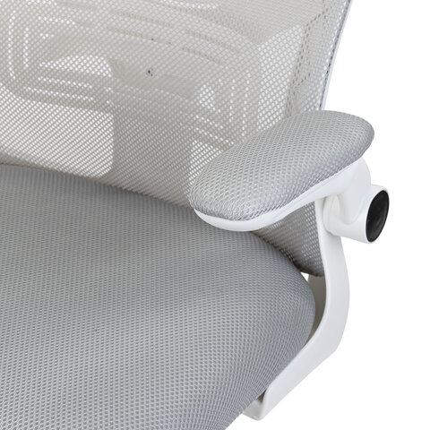 Кресло CROMEX (КРОМЕКС) "Dynamic CH-699", откидные подлокотники, пластик белый, сетка/ткань TW, серое, 533070