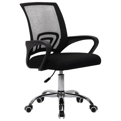 Кресло CROMEX (КРОМЕКС) "Top CH-695", ХРОМ, с подлокотниками, сетка/ткань TW, черное, 533066