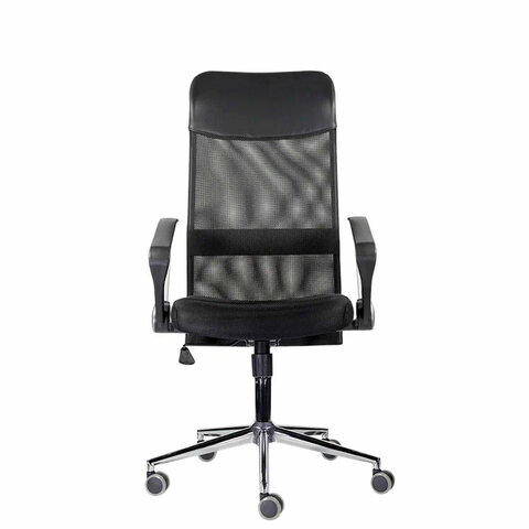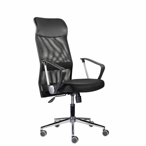 Кресло "Директ Лайт" МС-040, высокая спинка, с подлокотниками, хром, черное