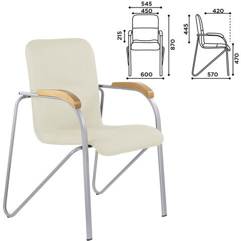 Кресло BRABIX "Samba CF-104", серый каркас, накладки "бук", кожзам бежевый, собрано, 532760