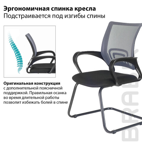 BRABIX "Fly CF-100" - доступное, качественное кресло с эргономичной сетчатой спинкой. Бюджетный вариант многофункционального кресла для оборудования приемных и переговорных.