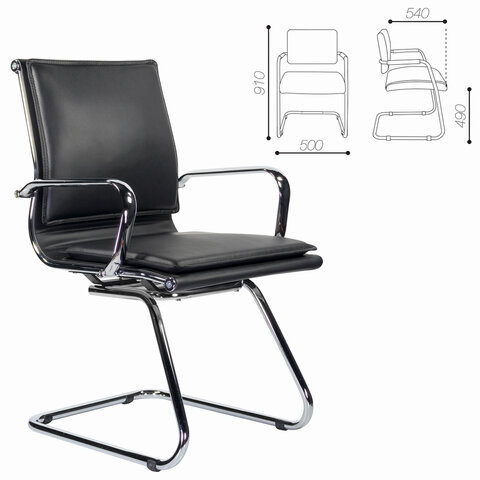 Кресло для приемных и переговорных BRABIX "Kayman CF-102", экокожа, хром, черное, 532572