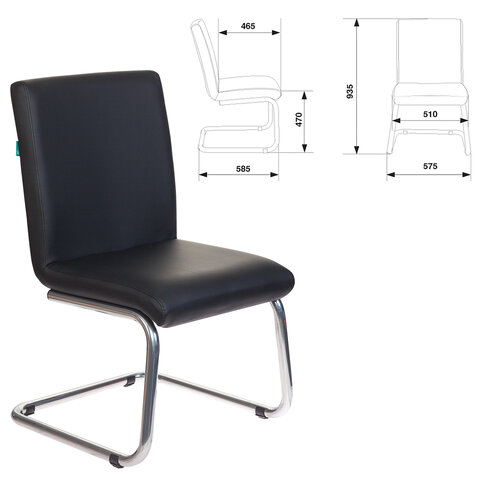 Кресло для приемных и переговорных CH-250-V, хром, экокожа, черное, 1098331