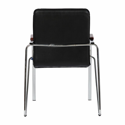 Кресло для приемных и переговорных "Samba", деревянные накладки, хромированный каркас, кожзам черный