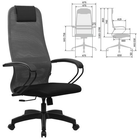 Кресло BRABIX PREMIUM "Ultimate EX-800" пластик, плотная двойная сетка Х2, черное/серое, 532915