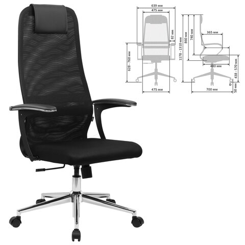 Кресло BRABIX PREMIUM "Ultimate EX-801" хром, плотная двойная сетка Х2, черное, 532917
